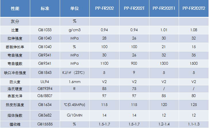 牌號:PP-FR202、PP-FR202T、PP-FR202T1、PP-FR202T2