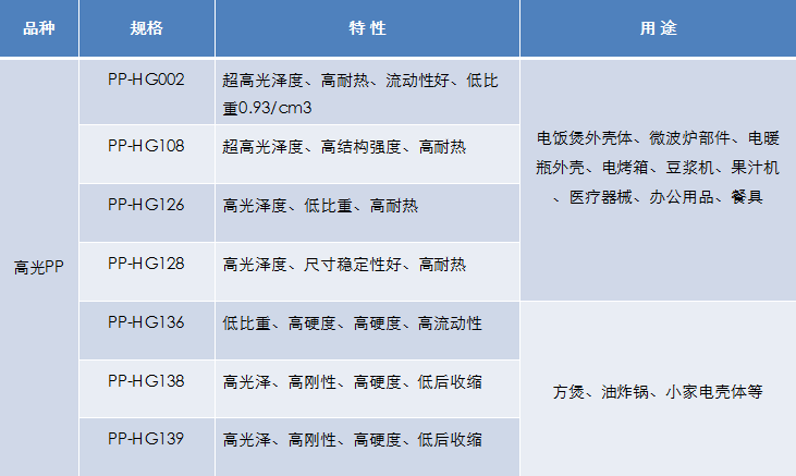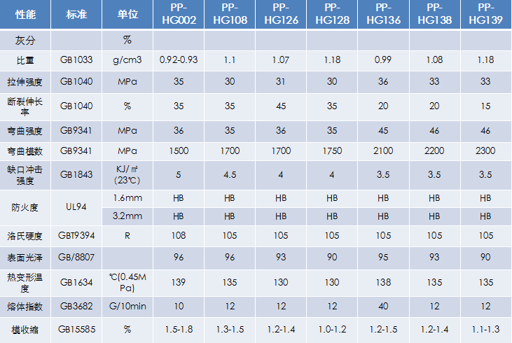 牌號:PP-HG002、PP-HG108、PP-HG126、PP-HG128